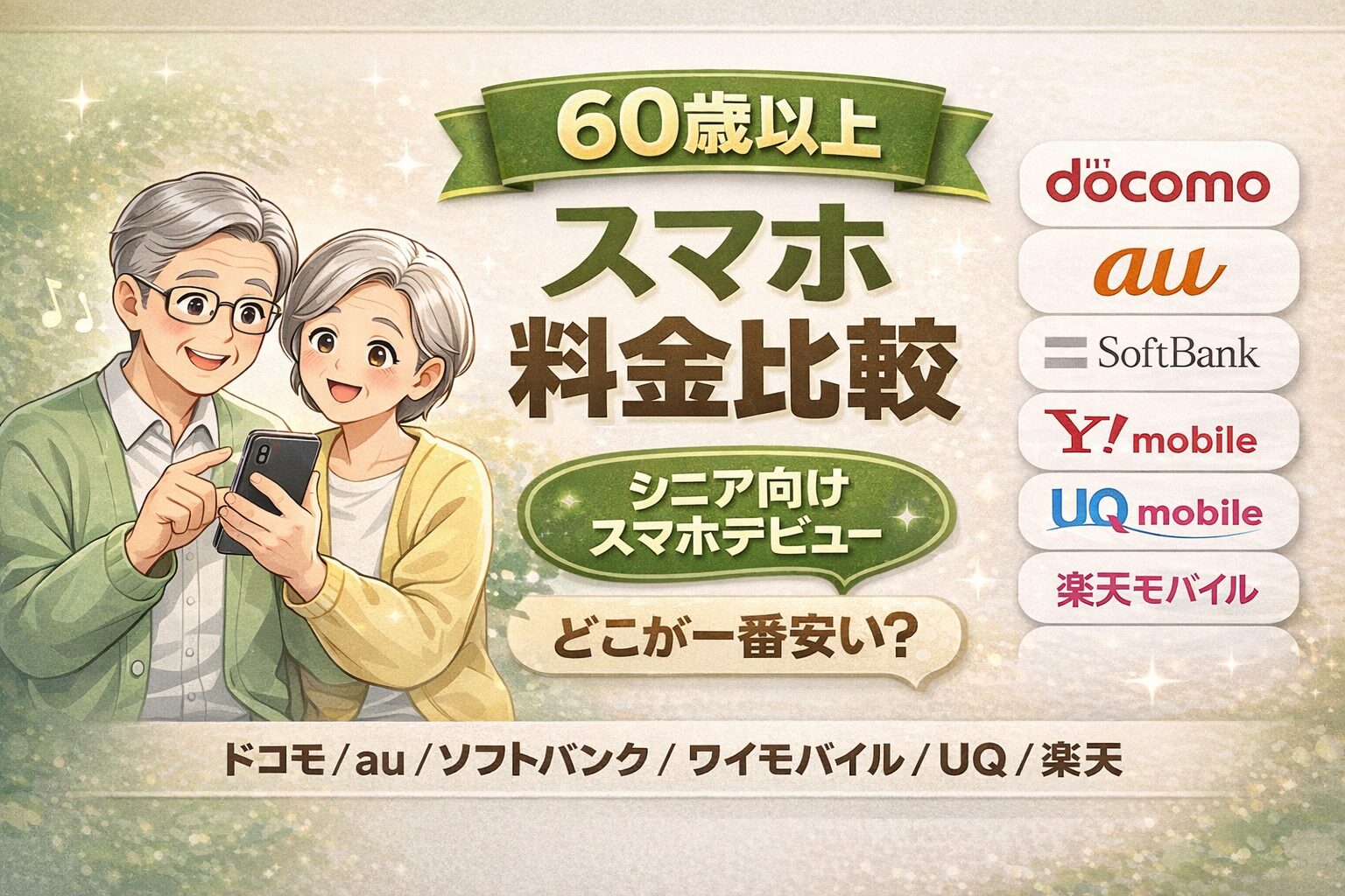 【2026年3月最新】60歳以上シニアのスマホデビューおすすめ料金プラン比較|ドコモ・au・ソフトバンク・ワイモバイル・UQモバイル・楽天モバイル