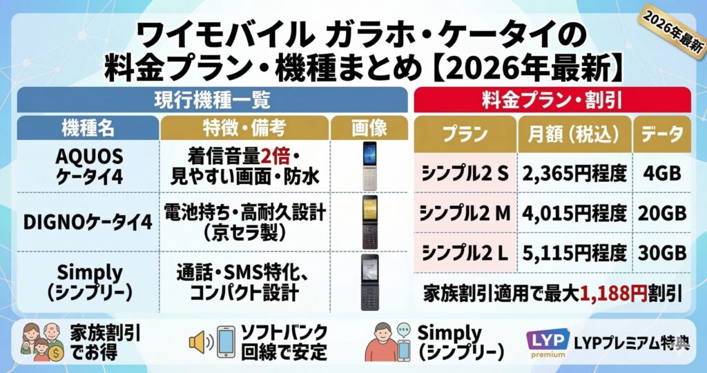 ワイモバイル ガラホ・ケータイの料金プラン・機種まとめ【2026年最新】