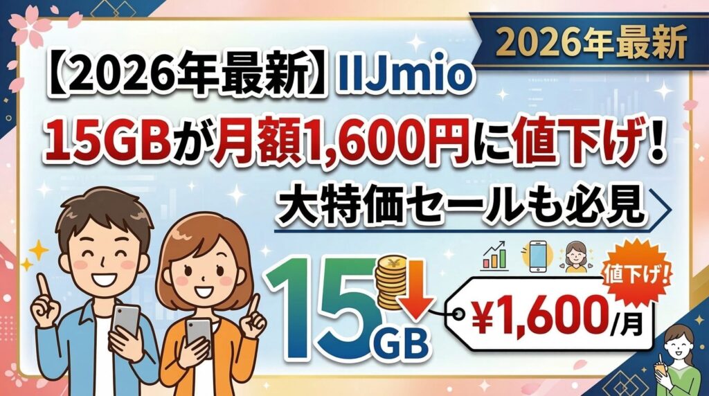 IIJmio 15GBが月額1,600円に値下げ!3月特価セールも必見【2026年3月】