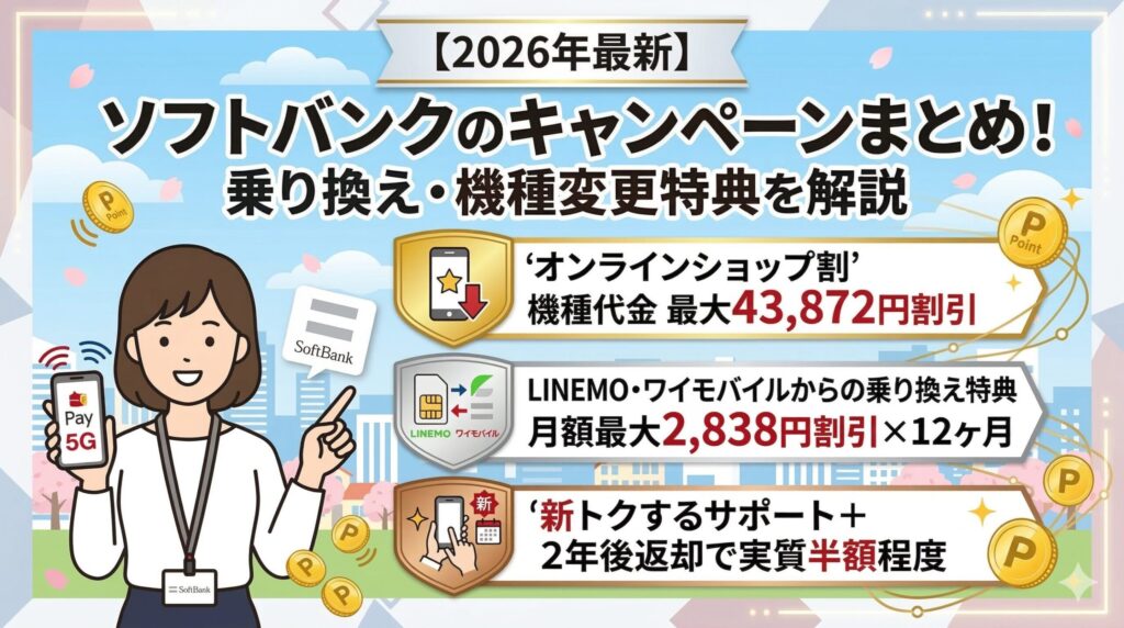 【2026年3月】ソフトバンクのキャンペーンまとめ!乗り換え・機種変更特典を解説