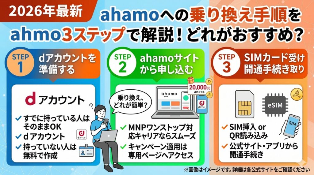 ahamoへの乗り換え手順を3ステップで解説!MNP方法・必要なもの・注意点まとめ【2026年】