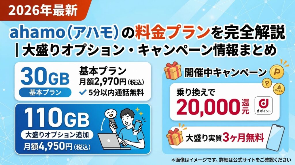 【2026年3月最新】ahamo(アハモ)の料金プランを完全解説|大盛りオプション・キャンペーン情報まとめ