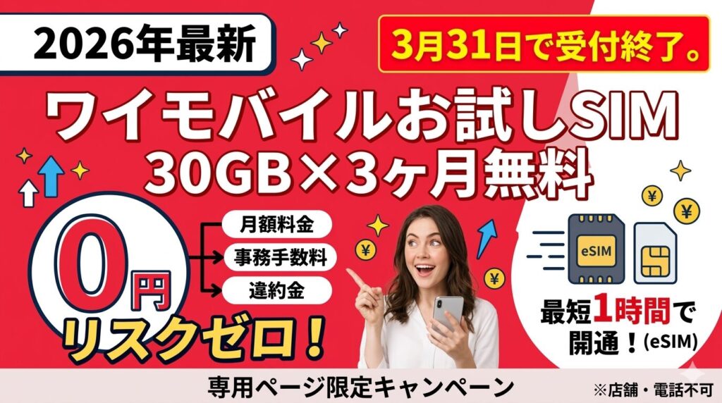 2026年3月現在、ワイモバイルはシンプル3 S/M/Lが現行プランです(旧シンプル2は2025年9月25日に新規受付終了)。ソフトバンク回線でつながりやすく、サポートが充実した格安スマホサービスです。