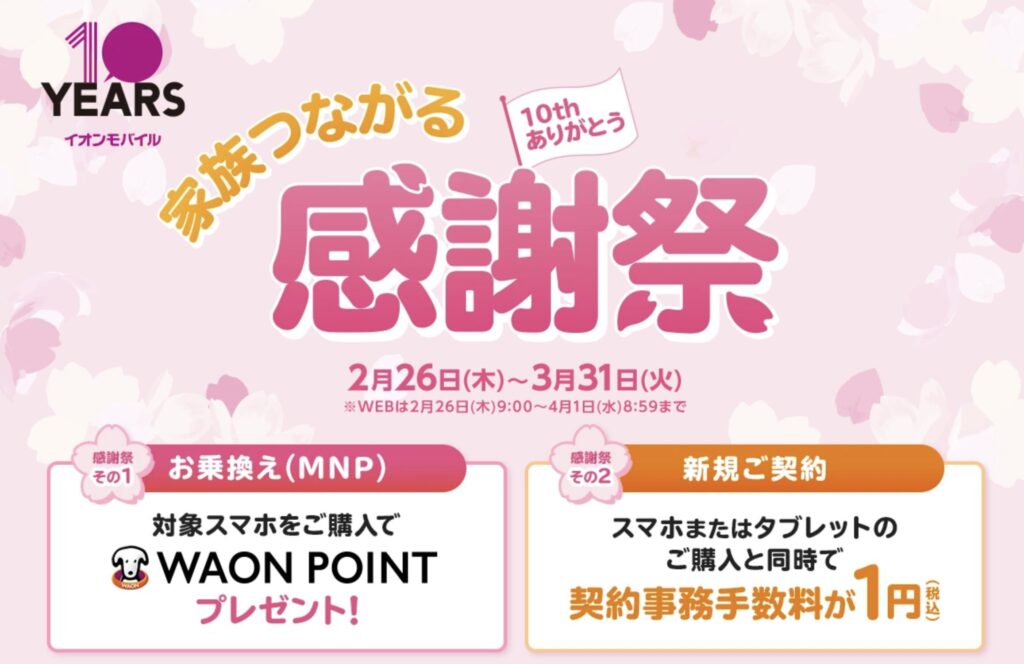イオンモバイル 春の乗換えキャンペーン2026|MNPでWAONポイントがもらえる!条件・注意点を解説